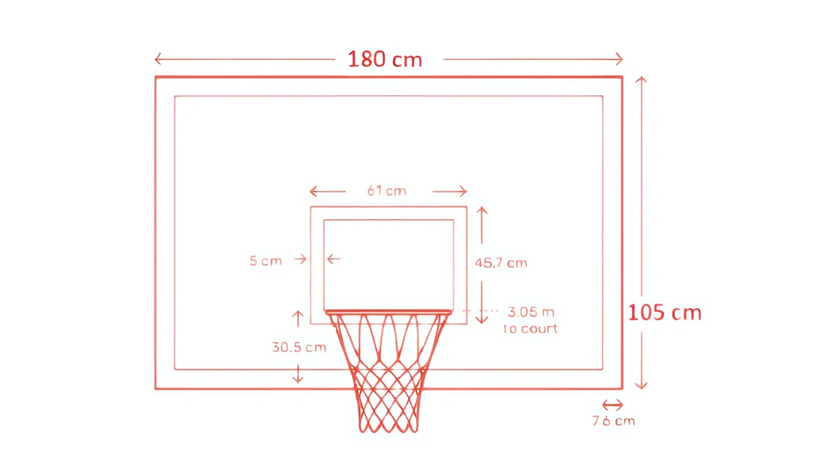 - Kích thước bảng bóng rổ tiêu chuẩn: 1,80 m (ngang) × 1,05 m (cao).