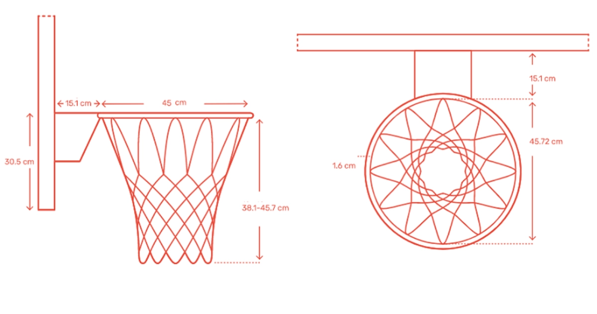 - Chiều cao vành rổ: 3,05 m tính đến mép trên vành.