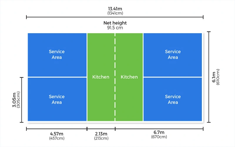 | Non-Volley Zone (NVZ/Kitchen) – mỗi bên | 7 ft | 2,13 m |