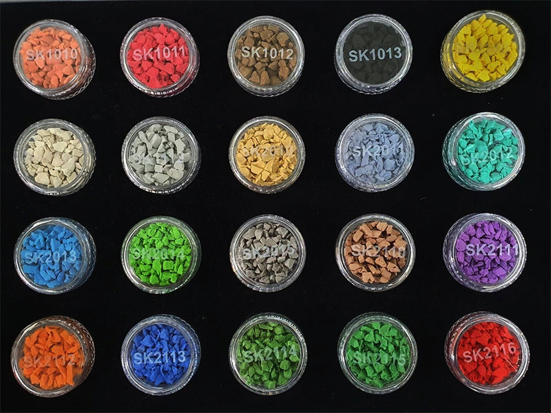 - Lớp mặt (wear layer): hạt EPDM màu + binder