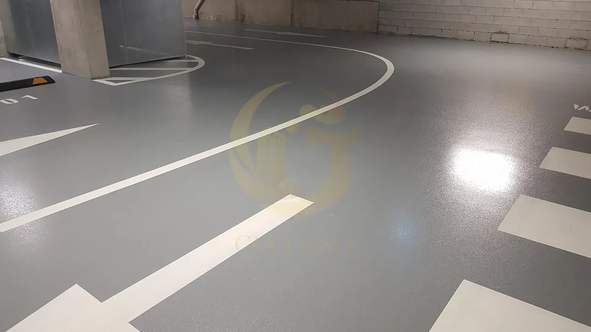 | Bãi xe bằng (ẩm) | R10–R11 | Phụ gia nhám hoặc rắc hạt mịn + khóa | Bán bóng | Kháng vệt lốp, bền mài mòn |