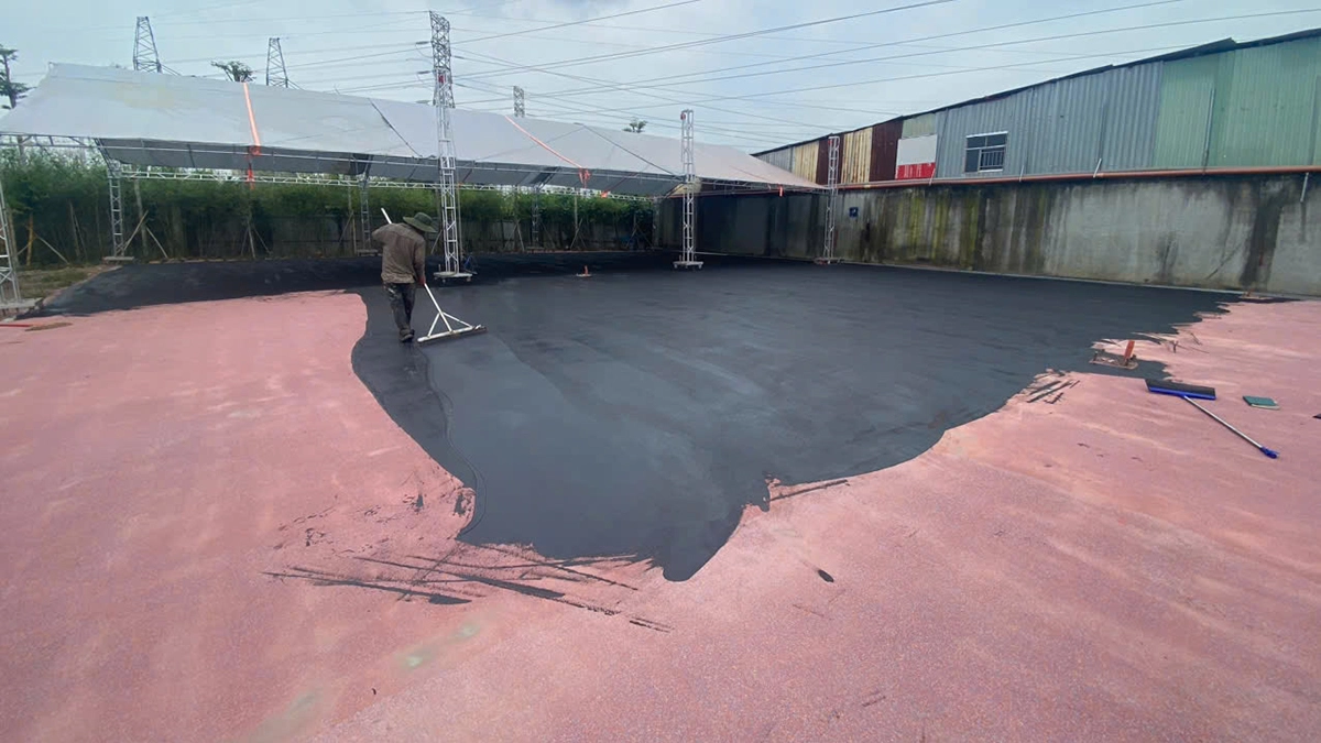 - Thi công mặt nền: Xử lý chống nứt, san phẳng, tạo độ dốc thoát nước; đảm bảo bề mặt sẵn sàng cho sơn.